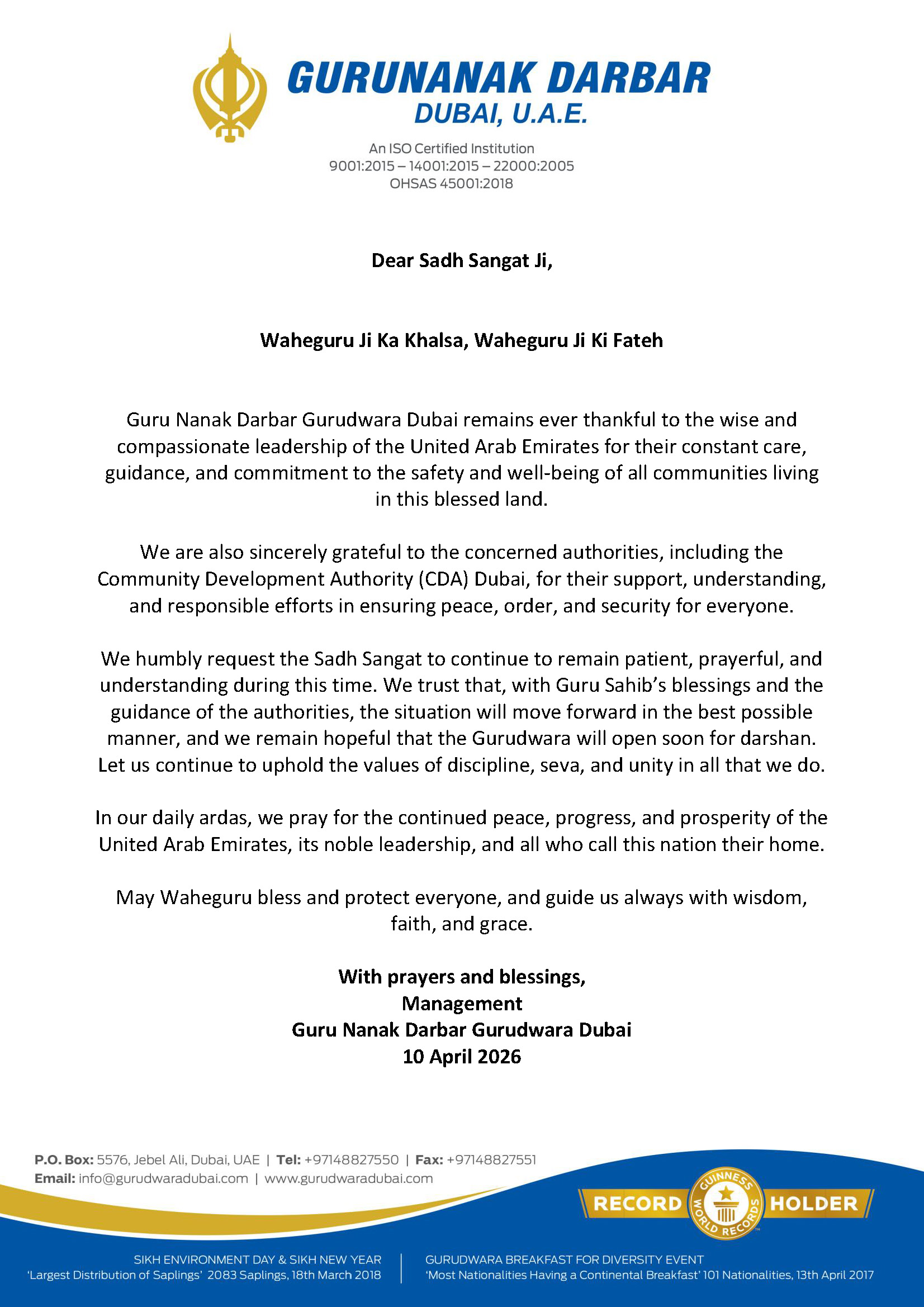 The entire Sikh community of the UAE are profoundly overwhelmed and indebted to the kindness and generosity of His Highness Sheikh Mohammed bin Rashid Al Maktoum for granting us this land for the noble cause of building a Sikh place of worship.